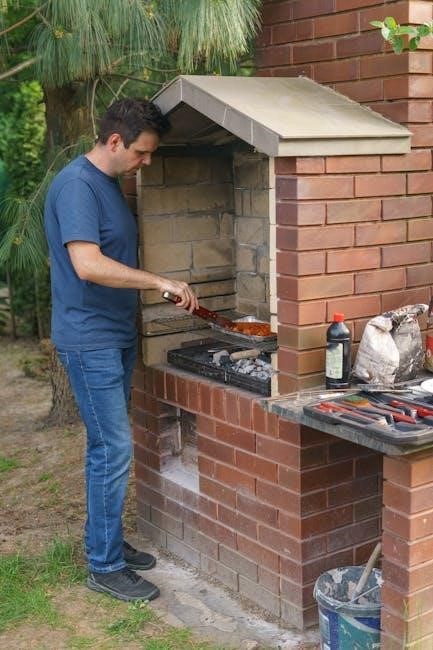 Regular cleaning is essential for maintaining your Blackstone Grill’s performance. After each use, allow the grill to cool slightly before brushing off food residue with a stiff brush. Wipe down the exterior with a damp cloth to remove splatters and stains. For tougher grime, mix baking soda and water to create a paste, apply it to the affected areas, and let it sit before scrubbing. Avoid harsh chemicals, as they can damage the finish. Consistent cleaning prevents rust and ensures a hygienic cooking surface for your next meal. Regular maintenance also extends the lifespan of your grill.